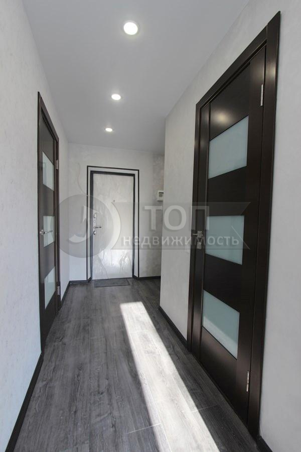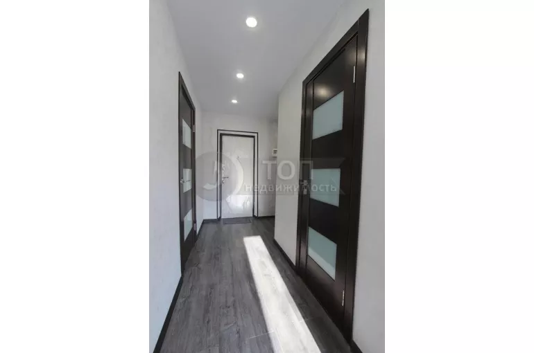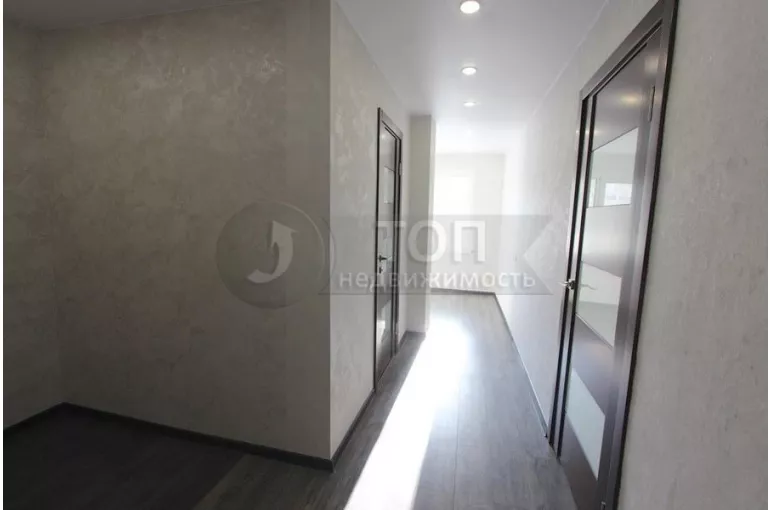 Квартира с НОВЫМ СОВРЕМЕННЫМ РЕМОНТОМ – после ремонта НИКТО НЕ жил. Пластиковые окна, тяжёлая металлическая входная дверь, качественные межкомнатные двери, полы бетонные, сверху ламинат 33 класса (уложен БЕЗ порогов), стены отшпатлёваны, поклеены современные однотонные обои, натяжные потолки с точечными светодиодными светильниками, сан. узел отделан кафелем, новая хорошая сан. техника, трубы пластиковые, счетчики холодной и горячей воды.