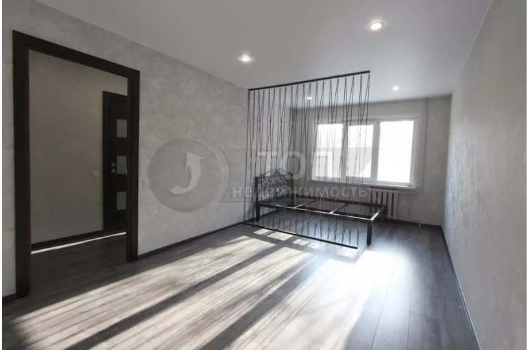 ПРОСТОРНАЯ ПЛАНИРОВКА с БОЛЬШОЙ КОМНАТОЙ и удобным коридором с ГАРДЕРОБНОЙ! В комнате установлена СОВРЕМЕННАЯ ДЕКОРАТИВНАЯ перегородка для разделения на ДВЕ зоны!