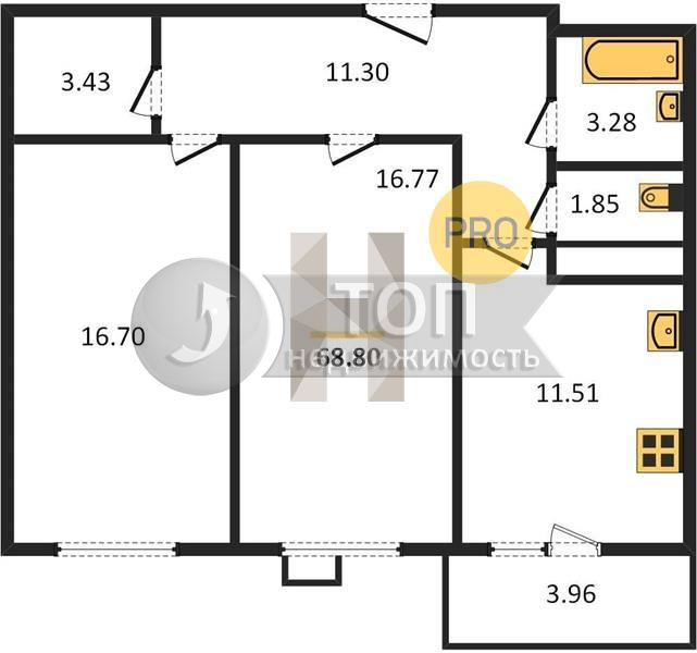 Общая площадь 68,8 кв.м