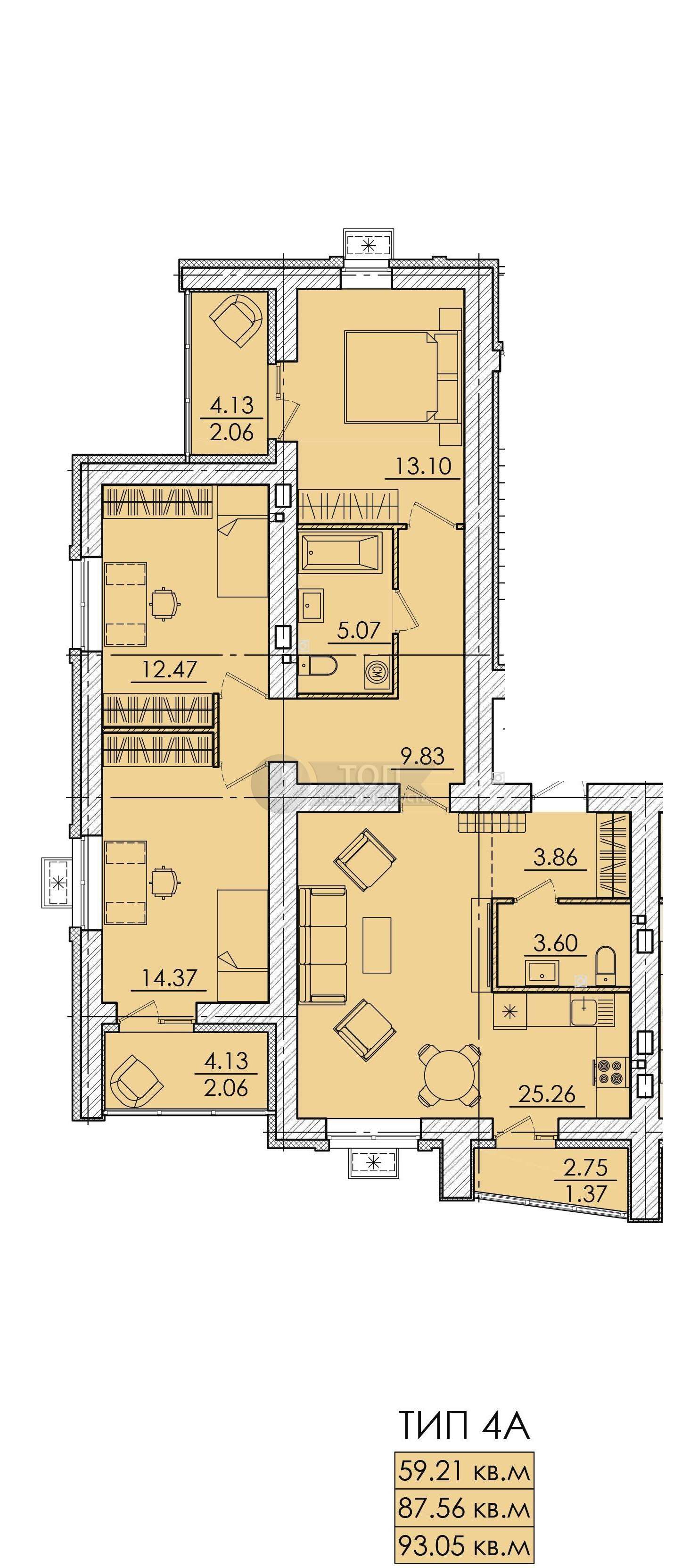 Общая площадь – 98,57 кв. м
